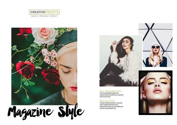پریست Editorial & Magazine Lightroom مجله و مقاله لایت روم مجموعه ای از 30 پریست لایت روم مناسب برای عکاسان و طراحان گرافیکی است. آنها با تنظیمات دقیق کالیبراسیون و چیدمان بی نقص برای احیای زندگی در تصاویر ایجاد شده اند. از آنها برای رسیدن به یک ظاهر ابریشمی نرم و صیقل یافته استفاده کنید .همه پریست ها ۱۰۰ % غیر مخرب هستند ، به این معنی که میتوانید با تنها یک کلیک به حالت اصلی عکس بازگردید ، و تصویر خام اولیه خود را همیشه ایمن نگه دارید .