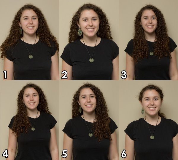 به طور کلی شما میخواهید که آنها روبروی دوربین قرار گیرند بنابراین بیشتر صورت آنها در نظر گرفته میشود . برای این برنامه آموزشی ، من موی (#6) را انتخاب کردم تا بتوانیم به راحتی دستورالعملهای ژست دهی را بدون حواسپرتی ببینیم . بسیاری از زنان موی دم اسبی را سبک موی روز میدانند ، اما این سبک در واقع خود را به خوبی در پرترهها و عکسهای سر و شانه نشان میدهد چون شما نمای تمیزی از چهره آنها دارید .