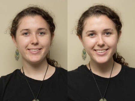 در اولین عکس، به مدل اشاره کردیم تا درب کنار ما را ببیند. شما میتوانید بیشتر سفیدی چشم او را ببینید که چیز بدی است . مطمئنا میخواهید عنبیه ، قسمت رنگین را ببینید. از مدل درخواست کردیم که به پنجره کنار در نگاه کند. این تغییر کوچک در خط دید، چشمانش را برگرداند، قسمت سفید را از بین می برد، و پرتره را جذاب تر می کند.