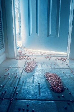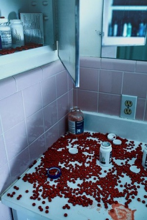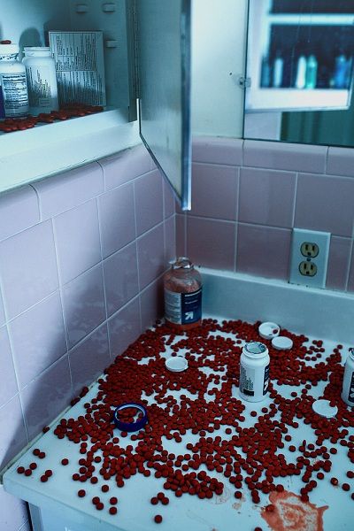 بالاخره زمان راه اندازی و عکاسی بود. قبل از اینکه شروع به پراکنده کردن قرصها به اطراف اتاق کنم، ابتدا احساس و حالتی را که میخواستم منتقل کنم را در نظر گرفتم. میدانستم که میخواستم صحنه احساس سرما و تنهایی کند ، اما همچنین میخواستم که حس گرما و راحتی که اغلب با مصرف مسکن همراه است را منتقل کنم . قرصهای قرمز روشن نشاندهنده درد جسمی و عاطفی است که فرد معتاد آن را مصرف میکند و آبی نشاندهنده آرامشی است که مسکن میدهد . وقتی حالم خوب شد , به حمام رفتم، کف اتاق و روشوئی را پاک کردم . این همبستگی ساده و کنار هم قرار گرفتن باعث ایجاد عکسهای مسحور کننده بیشتر شد وً باعث شد که قرص کامل شود .
