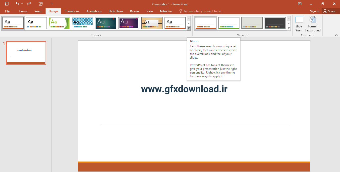 4. اگر موس را روی هر یک از قالب ها بگیرید پیش نمایش ان روی اسلایدتان را نمایش می دهد .