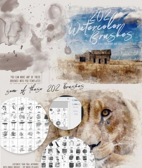 دانلود رایگان مجموعه 202 براش آب رنگی فتوشاپ Watercolor Brushes