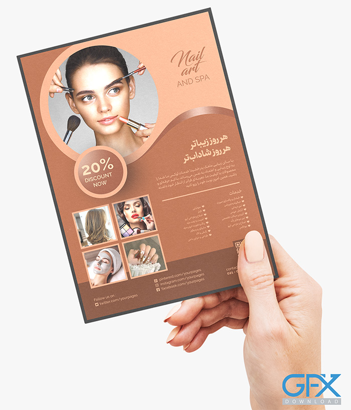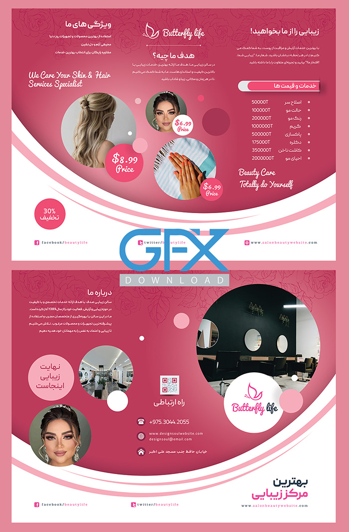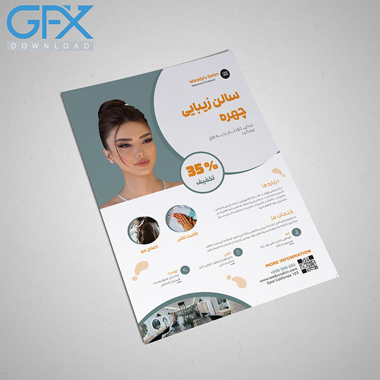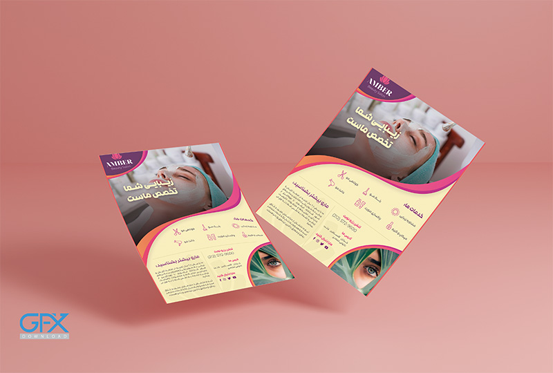 طرح لایه باز تراکت سالن زیبایی و آرایشگاه زنانه سایت جی اف ایکس دانلود