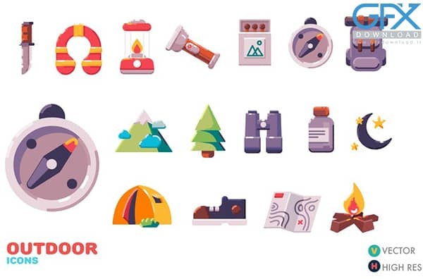 دانلود مجموعه وکتور آیکون های ماجراجویی