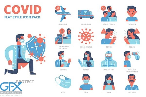استفاده از این آیکونها و المانهای گرافیکی کمک زیادی به اطلاع رسانی میکند. با دانلود مجموعه آیکون های کرونا ویروس می توانید از آن برای طراحی وب ، پوستر ، بروشور ، چاپ ، تبلیغات و غیره استفاده کنید و طراحی های خود را زیبا تر و با کیفیت تر از همیشه ارائه دهید. این بسته آیکون Covid 19 به سبک فلت طراحی شده است و دارای طراحی طراحی تمیز و واضح ، کیفیت بالا با ترکیب خوب می باشد. آیکون ویروس کرونا با فرمت های AI, EPS, PNG, SVG ارائه شده است.