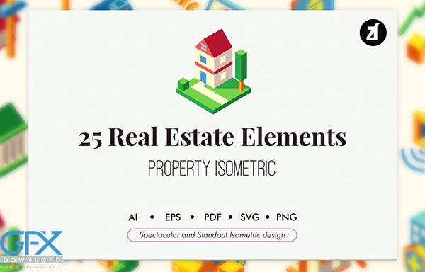 دانلود مجموعه 25 آیکون املاک و مستغلات ایزومتریک