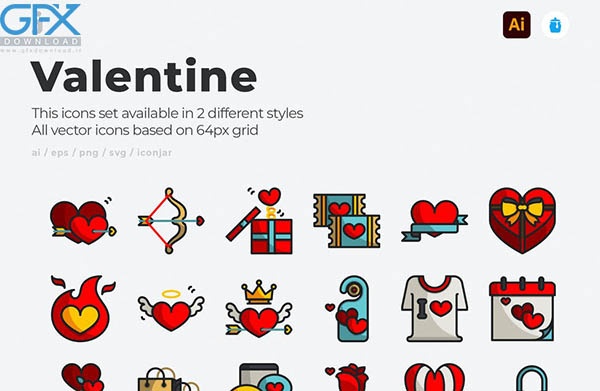 اگر برای طراحی های روز ولنتاین یا عاشقانه نیاز به المان های مختلف دارید از این رو برای شما مجموعه 30 آیکون عاشقانه ولنتاین را آماده کرده ایم . دانلود رایگان آیکون های ولنتاین در 2 سبک مختلف (Colorline، Outline) موجود است. همه نمادهای وکتور بر اساس شبکه 64 پیکسل است. این بسته آیکون هایی را در فرمت های مختلف فایل به شما ارائه می دهد. شامل فرمت های AI، EPS، SVG، PNG.