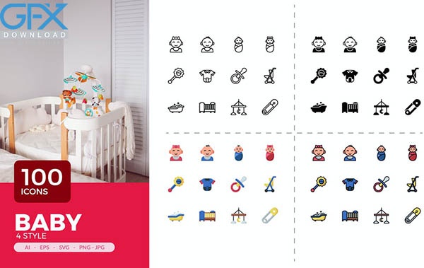دانلود رایگان 100 آیکون نوزاد و کودک