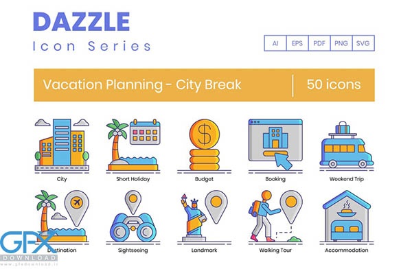 اگر میخواهید مسافران را درگیر کنید و به آنها نشان دهید که چگونه از تعطیلات شهری خود بیشترین بهره را ببرند، ما میتوانیم به شما کمک کنیم توجه آنها را جلب کنید. معرفی 50 آیکن بی نظیر با موضوع برنامه ریزی تعطیلات. دانلود 50 آیکون برای تعطیلات نه تنها عالی به نظر میرسند، بلکه کاملاً قابل تنظیم هستند. به راحتی می توانید آن ها را ویرایش و سفارشی سازی کنید. چه در حال اداره یک آژانس مسافرتی، یک وبلاگ یا هر نوع تجارت دیگری باشید. فرمت این مجموعه PDF, AI, SVG, PNG, EPS می باشد.