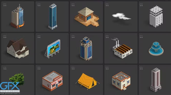دانلود آیکون های نقشه و ساختمان های مختلف