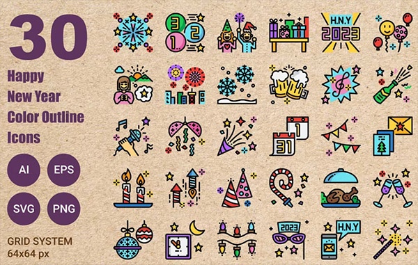 دانلود 30 آیکون رنگارنگ سال نو مبارک سال 2023