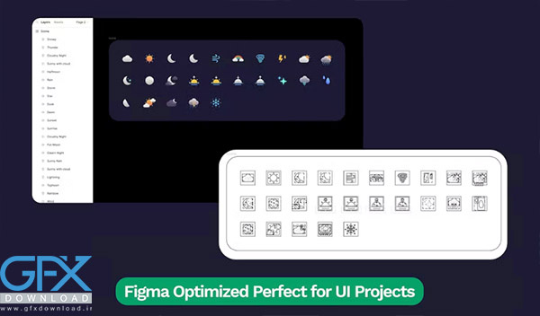 این ممجموعه به نام Weather Icon است. پروژه خود را با این آیکون های مینیمالیستی که 100% در figma ساخته شده اند ارتقا دهید. برای طراحی های گرافیکی، برنامهها، ارائهها و سایر پروژههای UI شما عالی است. شما به راحتی می توانید رنگ و بافت روی figma را تغییر دهید تا کاملاً با دستورالعمل برند شما مطابقت داشته باشد. برای دانلود آیکون های آب و هوا Weather از جی اف ایکس دانلود به ادامه مطلب مراجعه کنید.