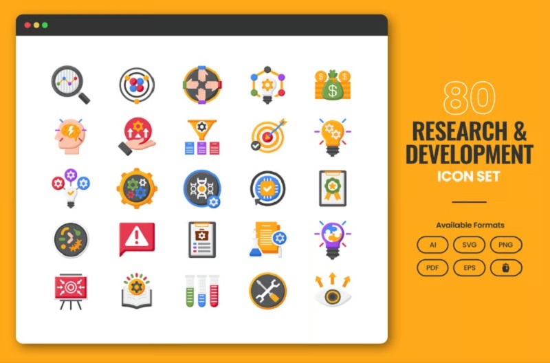 مجموعه آیکون های مرتبط با تحقیق و توسعه مناسب برای وب و اپلیکیشن