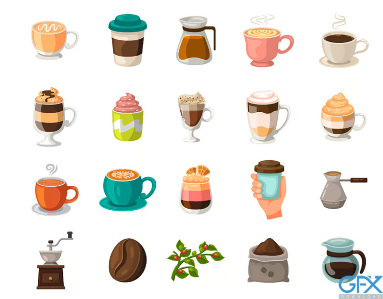 ویژگی های آیکون قهوه و کافی شاپ از جی اف ایکس دانلود