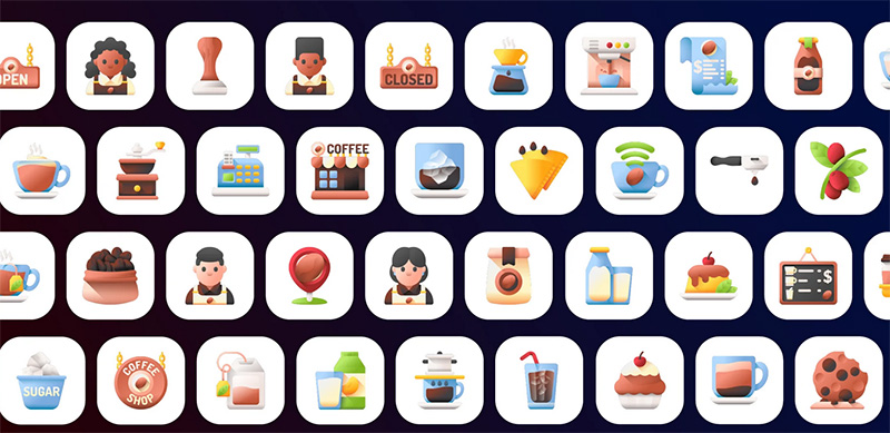 خرید آیکون های سه بعدی کافی شاپ