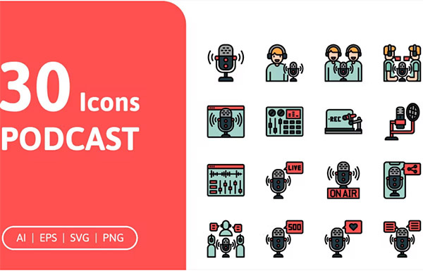 دانلود 30 آیکون وکتور پادکست 30 Podcast
