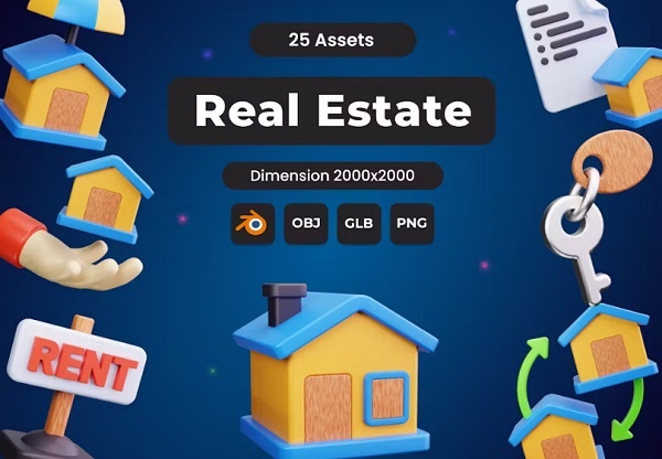 ✅ نام آیکون: Real Estate 3D Icons✅ شامل 25 آیکون سه بعدی