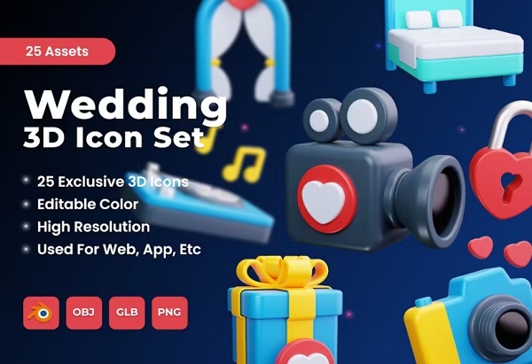 ✅ نام آیکون: Wedding 3D Icons✅ شامل 25 آیکون سه بعدی