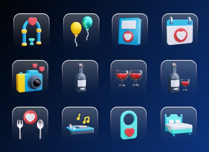 دانلود آیکون های سه بعدی با موضوع عروسی و نامزدی