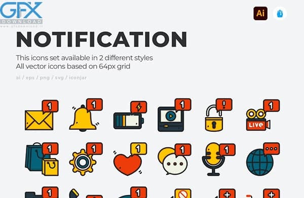 دانلود وکتور لایه باز 60 آیکون نوتیفیکیشن