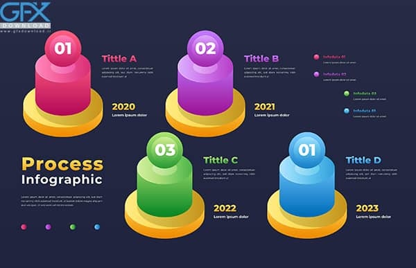 اینفوگرافی با طراحی مدرن برای کسب و کار، تجارت، طرح های گرافیکی و غیره که به صورت کاملا رایگان در سایت برای دانلود قرار گرفته شده است. قالب اینفوگرافیک رایگان استوانه ای مدرن با 4 استوانه می باشد که مراحل و فرآیند را نشان می دهد. فرمت این قالب اینفوگرافیک رایگان 4 مرحله ای EPS می باشد و مناسب جهت استفاده و ویرایش در نرم افزار ایلاستریتور است. شما می توانید هر کدام از آن ها را به دلخواه ویرایش کنید و از آن ها برای توضیح یک موضوع استفاده کنید و به صورت مختصر موضوع خود را به مخاطبان خود ابلاغ کنید.