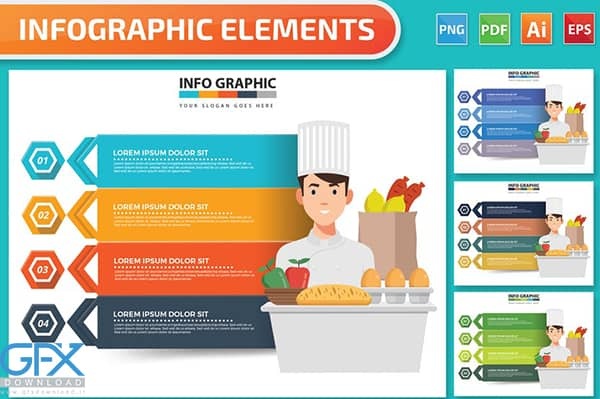دانلود قالب آماده اینفوگرافیک لایه باز المان های سرآشپز و آشپزی