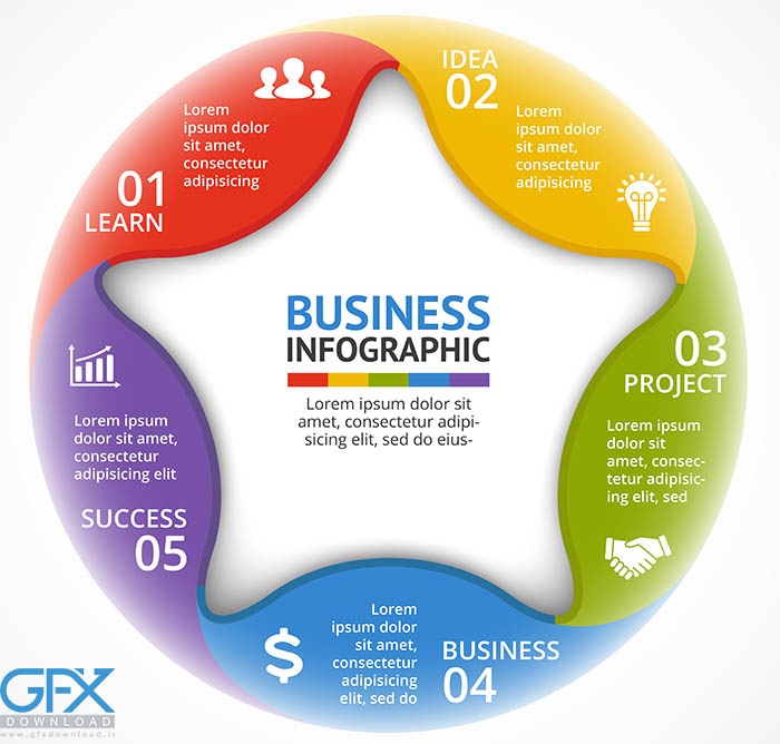 دانلود رایگان قالب اینفوگرافیک نمودار دایره ای 5 مرحله ای
