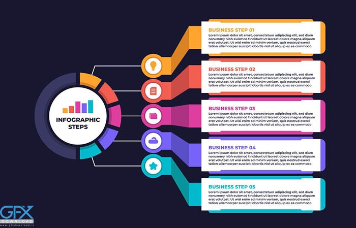 . فرمت این فایل اینفوگرافیک لایه باز کسب و کار AI, EPS, JPG, PDF, PSD, SVG است که می توانید در Adobe illustrator آن را به صورت کاملا لایه باز ویرایش و سفارشی سازی کنید. طراحی قالب اینفوگرافیک کسب و کار رنگارنگ یک قالب تجاری اینفوگرافیک است که برای نیاز شرکت شما مناسب است.