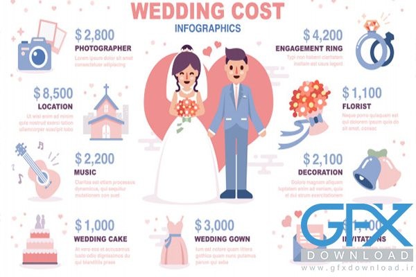 دانلود وکتور اینفوگرافیک عروسی و هزینه های ازدواج
