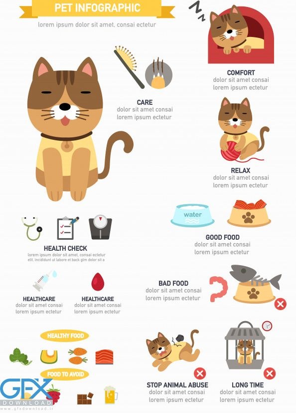 دانلود اینفوگرافیک گربه و پوستر اطلاعاتی درباره گربه با نام Cat informative poster. طراحی پوستر تبلیغاتی قدرتمند و تاثیر گذار نیازمند ایده پردازی قوی می باشد که با استفاده از فایل آماده اینفوگرافیک می توانید به راحتی در کارهای گرافیکی و تبلیغاتی خود استفاده کنید. با فرمت ai و jpg قابل ویرایش در نرم افزار ایلوستریتور و فتوشاپ.