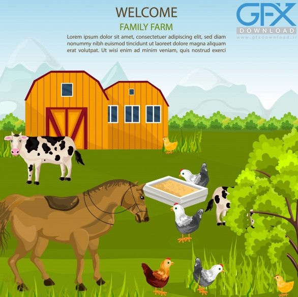 دانلود وکتور اینفوگرافیک مزرعه و گاو با نام family farm with cows. وکتور با کیفیت عالی مناسب برای طراحی گرافیک حرفه ای شامل حیوانات مزرعه از جمله اسب، گاور، مرغ و خروس. اینفوگرافیک مزرعه دارای قابلیت بزرگنمایی تا هر اندازه ای با فرمت eps و jpg است. برای اجرای فایل های وکتور نیاز به نرم افزارهایی با قابلیت برداری مانند Adobe illustrator خواهید داشت.