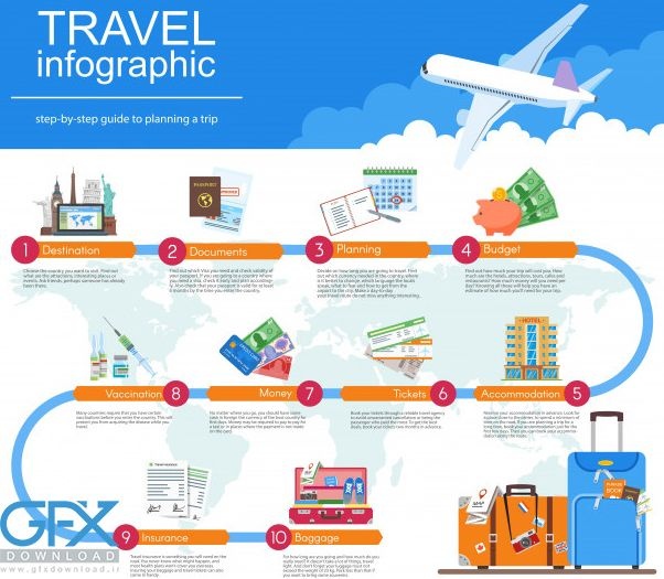 دانلود اینفوگرافیک سفر و راهنمای مسافرتی گردشگری . وکتور اینفوگرافیک سفر با نام travel guide با فرمت eps و jpg. طرح اینفوگرافیک با موضوع توریست و مسافرت برای طراحی های گرافیکی و تبلیغاتی. برای دانلود اینفوگرافیک آماده از جی اف ایکس دانلود به ادامه مطلب مراجعه کنید.