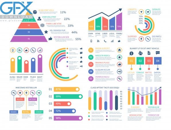مجموعه المان هاي اينفوگرافيک نمودار از عناصر اینفوگرافیک نمودارها. قالب المانهای اینفوگرافیک ویژه طراحان گرافیکی و پوسترها. این وکتور عناصر اینفوگرافیک شامل انواع نمودارهای میله ای و خطی، خط زمانی، جعبه متن و نمودار های تجزیه و تحلیل اینفوگرافیکی می باشد. قابلیت ویرایش کلیه اجزا و المان ها توسط نرم افزارهای طراحی برداری نظیر ایلوستریتور با فرمت eps .