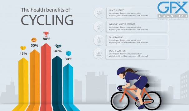 دانلود اینفوگرافک سلامت در دوچرخه سواری با فرمت eps و کیفیت بسیار بالا مناسب جهت استفاده در انواع طراحی های گوناگون تبلیغاتی اینفوگرافیک سلامت می باشد. اینفوگرافیک دوچرخه سواری کاملا لایه باز می باشد که شامل نکاتی در مورد مزایای دوچرخه سواری بر روی سلامت انسان است. برای دانلود اینفوگرافیک به ادامه مطلب مراجعه کنید.