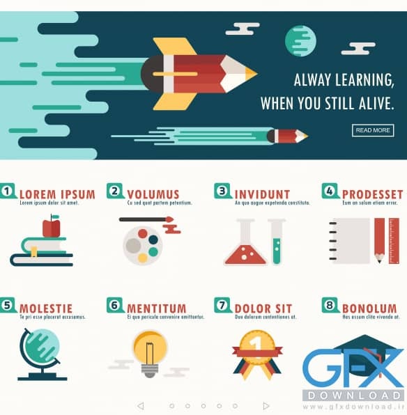 دانلود طرح آماده اینفوگرافیک بنر آموزشی و المان های آموزشی