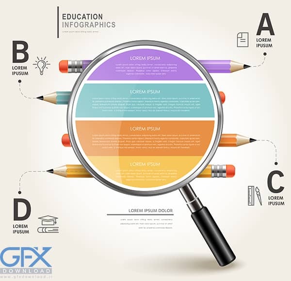 با این قالب اینفوگرافیک که نمایشگر تصویری می باشد اطلاعات را سریعتر به بیننده می توانید منتقل کنید. با کمک فایل آماده اینفوگرافیک آموزشی به زبان ساده تر با عناصر مختلف آن مثل عکس ، آیکون ، نمودار ها وکتور و ..… داده ها و اطلاعات را به صورت سریع و زیبا به بیننده انتقال دهید. این اینفوگرافیک با طراحی به سبک ذره بین می باشد و مناسب برای موضوعات آموزش، درسی، دانشگاهی و مدرسه است. فرمت این فایل eps است که قابل ویرایش در نرم افزار ایلاستریتور می باشد.