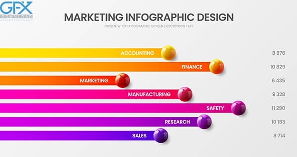 دانلود قالب اینفوگرافیک لایه باز نمودار های میله ای رنگارنگ