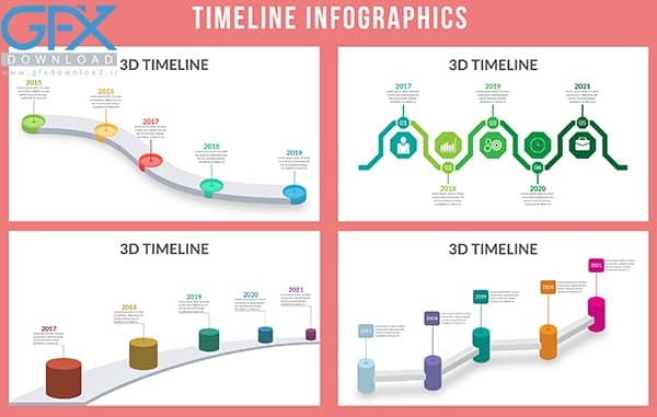 دانلود قالب آماده طرح اینفوگرافیک تایم لاین سه بعدی