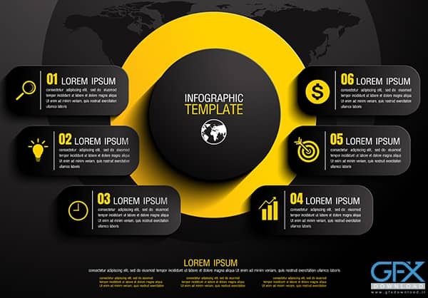 قالب آماده اینفوگرافیک لایه باز مدرن با فرمت EPS ، Ai و JPG بر روی سایت جی اف ایکس دانلود بارگذاری شده است که این فایل ها بدلیل وکتور بودن محدودیتی در کیفیت ندارند.