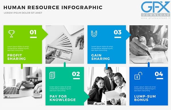 با این قالب آماده اینفوگرافیک Human resource که نمایشگر تصویری می باشد اطلاعات را سریعتر به بیننده می توانید منتقل کنید. این طرح به راحتی قابل ویرایش و سفارشی سازی است و می توانید محتوای خود را به آسانی وارد کنید. پسورد فایل : www.gfxdownload.ir