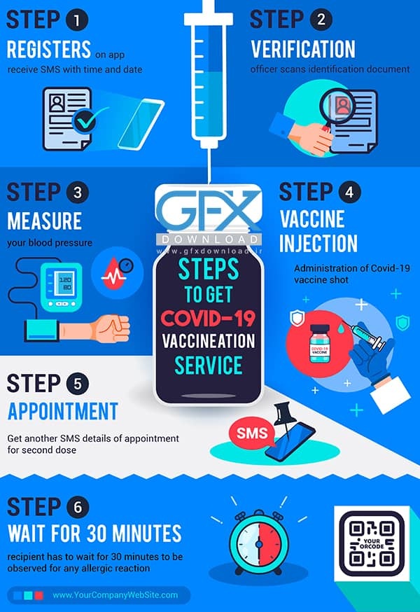 دانلود رایگان اینفوگرافیک لایه باز مراحل دریافت واکسن کرونا covid19