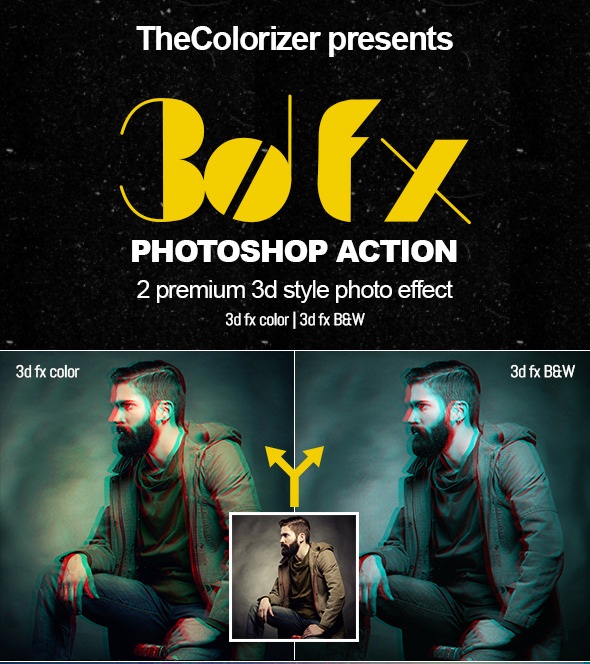 دانلود اکشن آماده فتوشاپ سه بعدی کردن عکس