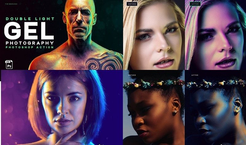 دانلود اکشن های آماده فتوشاپ مخصوص اعمال افکت های نوری چند گانه بر روی عکس gel dual lighting