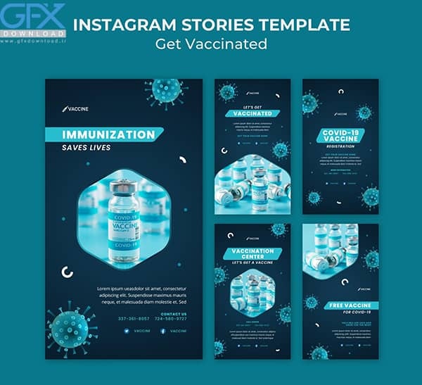 دانلود رایگان مجموعه قالب استوری اینستاگرام با موضوع واکسن