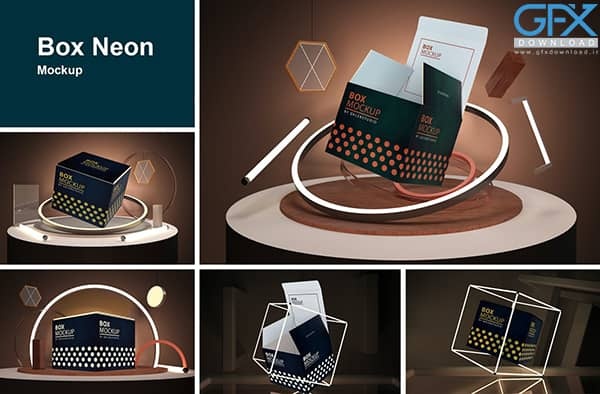 دانلود موکاپ لایه باز جعبه های نئونی در زوایای مختلف