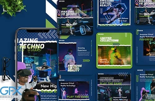 دانلود 9 قالب پست اینستاگرام لایه باز تکنولوژی واقعیت مجازی