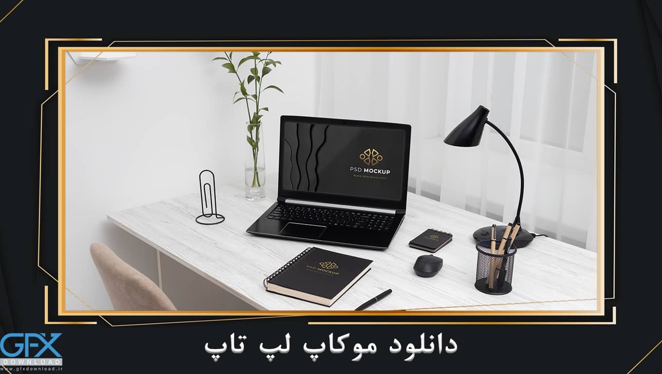 دانلود موکاپ رایگان لپ تاپ روی میز تحریر