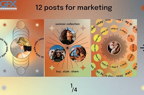 دانلود 12 قالب پست اینستاگرام با زمینه گرادینت و شکل