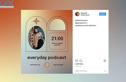 در این مطلب شاهد یک قالب لایه باز اینستاگرام مناسب برای پست های تبلیغاتی در شبکه های اجتماعی می باشید. طراحی این قالب لایه باز اینستاگرام خلاقانه بسیار زیبا و دارای ایده خلاقی می باشد که باعث بهتر دیده شدن کسب و کار شما و جذب فالوور در فضای مجازی خواهد شد. این قالب پست اینستاگرام با زمینه گرادینت و شکل لایه باز با فرمت psd ارائه شده است.