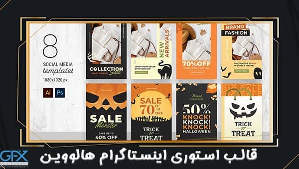در این مجموعه شاهد قالب های آماده رسانه های اجتماعی با موضوع هالووین برای تبلیغ هالووین در استوری های اینستاگرام و فیس بوک می باشید. کاملا لایه باز استوری اینستاگرام با موضوع جشن هالووین جهت استفاده و ویرایش در نرم افزارهای Photoshop و Illustrator می باشد. این قالب استوری اینستاگرام لایه باز هالووین در قالب فایل های AI, PSD بر روی سایت بارگذاری شده که با استفاده از آن می توانید استوری های زیبا و فوق العاده زیبایی برای شبکه اجتماعی اینستاگرام ایجاد کنید.
